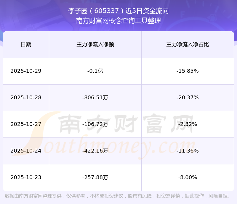 二、李子園(605337)近期盤面、資金面情況
