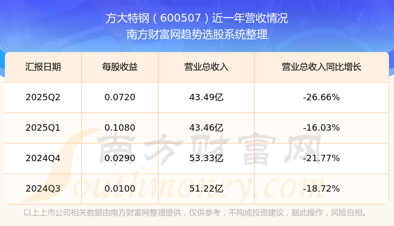 按照南方財(cái)富網(wǎng)概念查詢工具統(tǒng)計(jì),該股所屬板塊為特鋼板塊,該板塊共有38只股票,方大特鋼2025第二季度營收在該板塊中排名為第22名,該板塊2025第二季度營收排名前十的股票如下表: