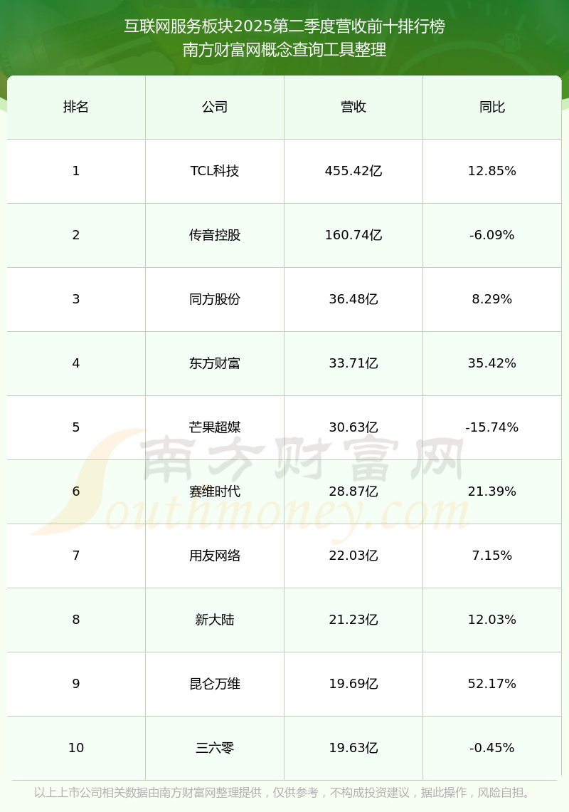 按照南方財富網(wǎng)概念查詢工具統(tǒng)計,該股所屬板塊為互聯(lián)網(wǎng)服務(wù)板塊,該板塊共有52只股票,數(shù)據(jù)港2025第二季度營收在該板塊中排名為第52名,該板塊2025第二季度營收排名前十的股票如下表: