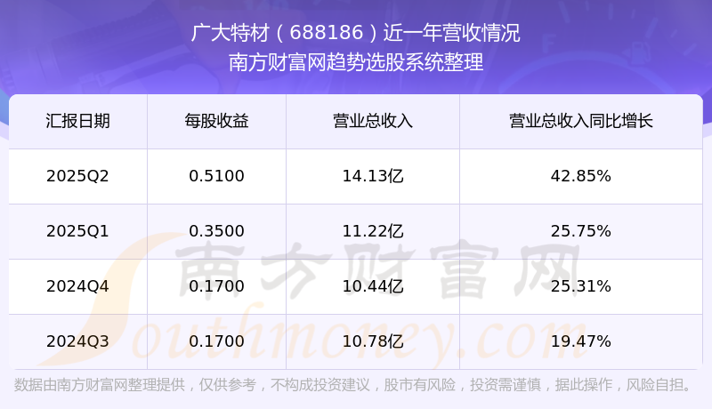 廣大特材披露了2025年第二季度財(cái)報(bào)。報(bào)告顯示,廣大特材2025年第二季度實(shí)現(xiàn)營(yíng)收14.13億元,同比42.85%;歸母凈利潤(rùn)1.11億元,同比190.89%。