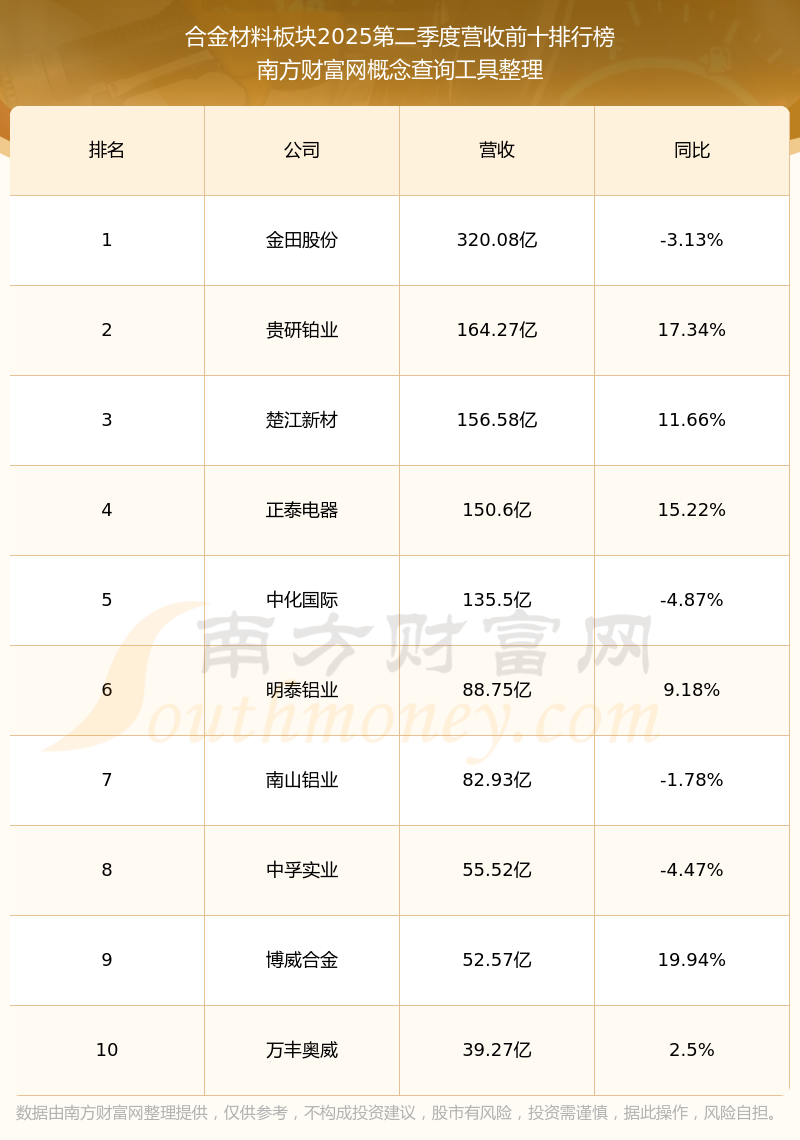 按照南方財(cái)富網(wǎng)概念查詢工具統(tǒng)計(jì),該股所屬板塊為合金材料板塊,該板塊共有53只股票,廣大特材2025第二季度營(yíng)收在該板塊中排名為第22名,該板塊2025第二季度營(yíng)收排名前十的股票如下表: