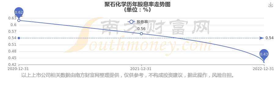 近年聚石化學(xué)年度股息率走勢(shì)如下圖: