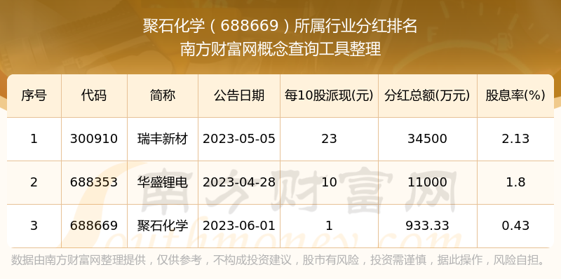 二、聚石化學(xué)688669行業(yè)分紅排名
