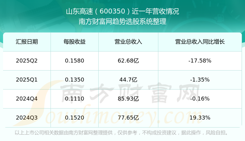 按照南方財(cái)富網(wǎng)概念查詢工具統(tǒng)計(jì),該股所屬板塊為高速板塊,該板塊共有15只股票,山東高速2025第二季度營收在該板塊中排名為第1名,該板塊2025第二季度營收排名前十的股票如下表: