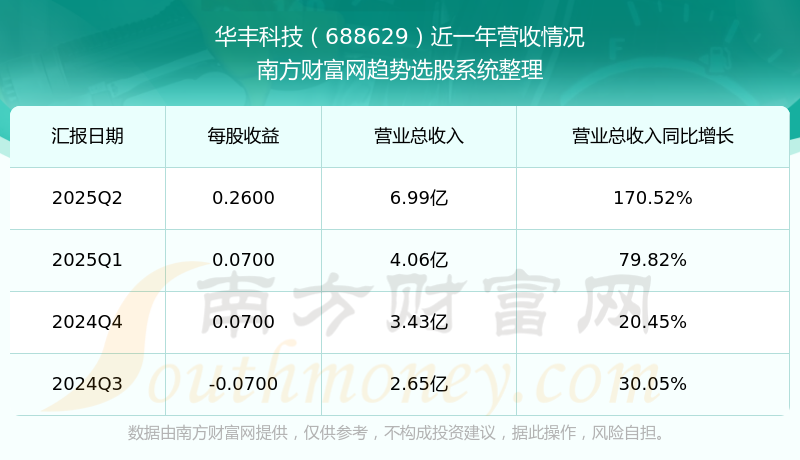 華豐科技2025年第二季度財報顯示,公司主營收入6.99億元,同比170.52%;歸母凈利潤1.19億元,同比520.36%;扣非凈利潤1.12億元,同比408.45%;