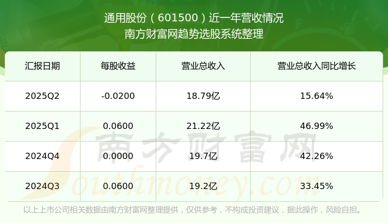 通用股份2025年第二季度財報顯示,公司主營收入18.79億元,同比15.64%;歸母凈利潤-3838.41萬元,同比-128.7%;扣非凈利潤-4520.18萬元,同比-135.7%。