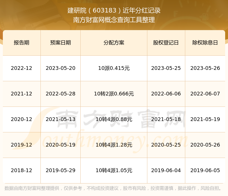 建研院最新一次公布的分紅方案為10派0.415元。本次權(quán)益分派股權(quán)登記日為2023年5月25日,除權(quán)除息日為2023年5月26日,派息日為2023年5月26日。