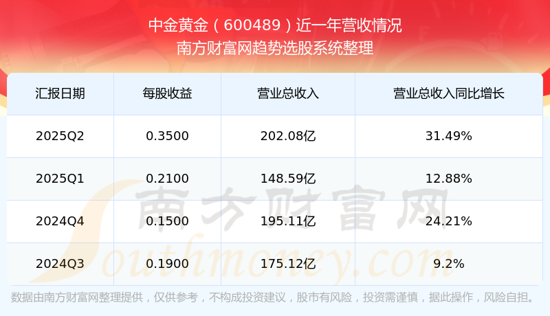 在2025年第二季度,中金黃金的業(yè)績表現(xiàn),主營業(yè)務收入達到202.08億元,實現(xiàn)了31.49%的同比增長率。同時,公司歸母凈利潤錄得16.56億元,同比增長72.57%。