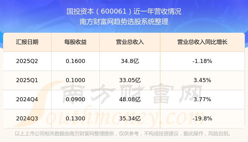 國投資本2025年第二季度財報顯示,公司主營收入34.8億元,同比-1.18%;歸母凈利潤10.21億元,同比13.27%;扣非凈利潤10.05億元,同比12.45%。