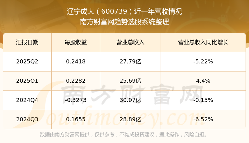 遼寧成大2025年第二季度公司實現(xiàn)營業(yè)收入27.79億元,同比-5.22%;歸母凈利潤3.7億元,同比-0.36%。
