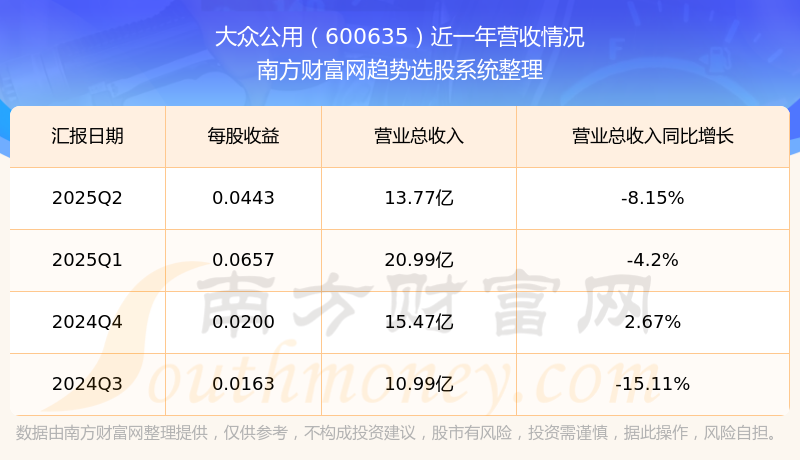 A股上市公司大眾公用(代碼:600635)發(fā)布2025年第二季度財(cái)報(bào),公司2025年第二季度歸屬于上市公司股東的凈利潤(rùn)為1.39億元,凈利潤(rùn)同比增長(zhǎng)47.02%,環(huán)比增長(zhǎng)-28.45%。