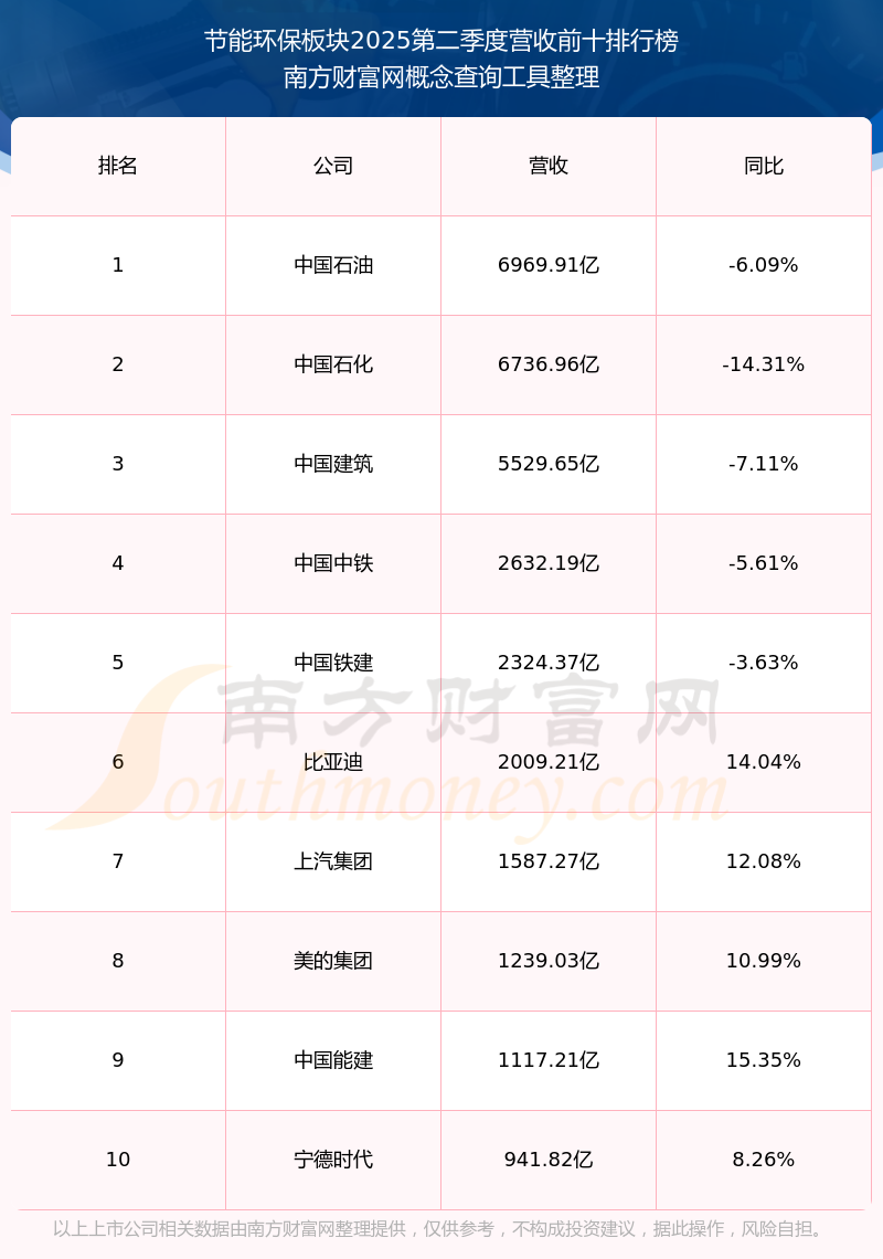 按照南方財富網(wǎng)概念查詢工具統(tǒng)計,該股所屬板塊為節(jié)能環(huán)保板塊,該板塊共有622只股票,綠城水務2025第二季度營收在該板塊中排名為第295名,該板塊2025第二季度營收排名前十的股票如下表: