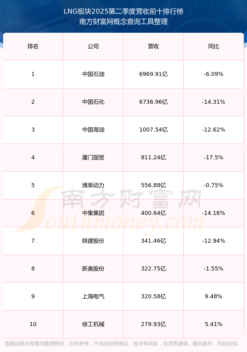 按照南方財富網(wǎng)概念查詢工具統(tǒng)計,該股所屬板塊為LNG板塊,該板塊共有116只股票,洪通燃氣2025第二季度營收在該板塊中排名為第70名,該板塊2025第二季度營收排名前十的股票如下表: