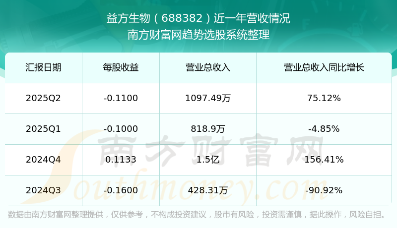 益方生物2025年第二季度公司實(shí)現(xiàn)營(yíng)業(yè)收入1097.49萬(wàn)元,同比75.12%;歸母凈利潤(rùn)-6193.34萬(wàn)元,同比52.74%。