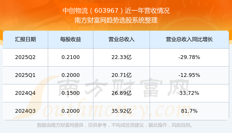 一、中創(chuàng)物流(603967)股票營收情況