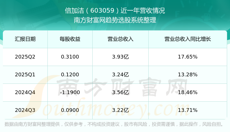 倍加潔2025年第二季度顯示,公司主營收入3.93億元,同比17.65%;歸母凈利潤3110.98萬元,同比119.08%;扣非凈利潤2841.09萬元,同比111.15%;