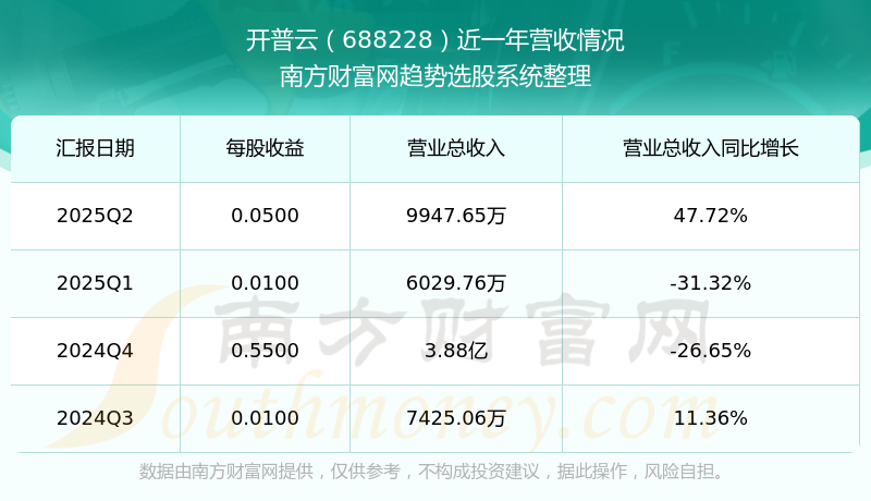 按照南方財(cái)富網(wǎng)概念查詢工具統(tǒng)計(jì),該股所屬板塊為軟件板塊,該板塊共有246只股票,開普云2025第二季度營收在該板塊中排名為第194名,該板塊2025第二季度營收排名前十的股票如下表: