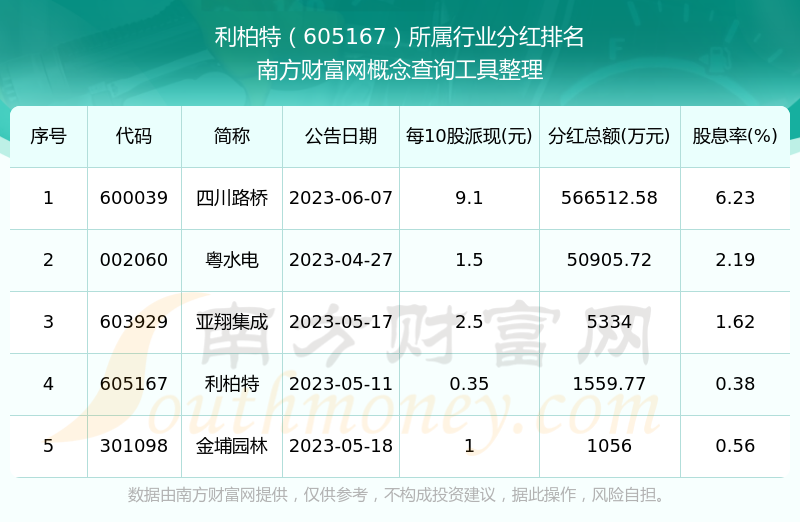 按照南方財(cái)富網(wǎng)趨勢(shì)選股系統(tǒng)統(tǒng)計(jì),利柏特所屬行業(yè)為工程施工行業(yè),工程施工行業(yè)分紅排名情況如下表: