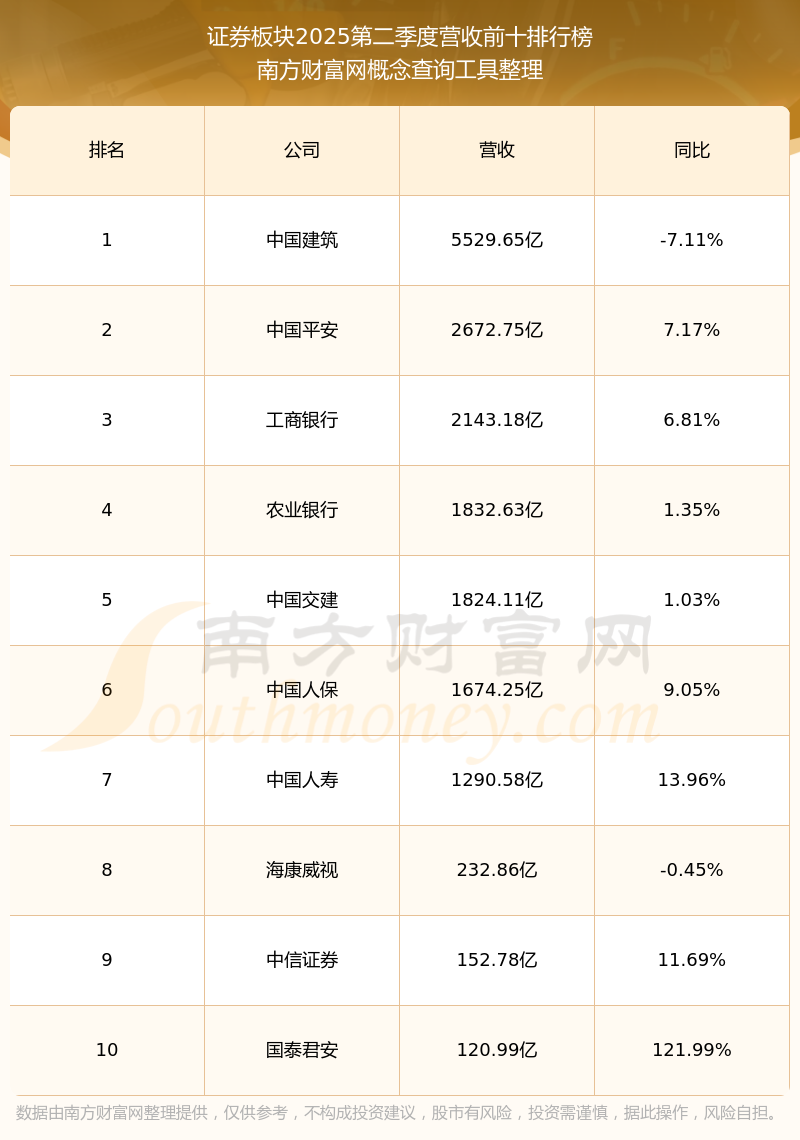 按照南方財(cái)富網(wǎng)概念查詢(xún)工具統(tǒng)計(jì),該股所屬板塊為證券板塊,該板塊共有65只股票,首創(chuàng)證券2025第二季度營(yíng)收在該板塊中排名為第43名,該板塊2025第二季度營(yíng)收排名前十的股票如下表: