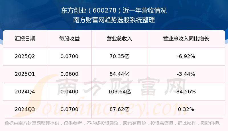 東方創(chuàng)業(yè)2025年第二季度報(bào)告顯示,公司實(shí)現(xiàn)主營(yíng)業(yè)務(wù)收入70.35億元,較去年同期增長(zhǎng)-6.92%;歸屬于母公司股東的凈利潤(rùn)為6077.23萬(wàn)元,同比增長(zhǎng)-12.84%;扣除非經(jīng)常性損益后的凈利潤(rùn)為6481萬(wàn)元,同比增長(zhǎng)-1.48%。