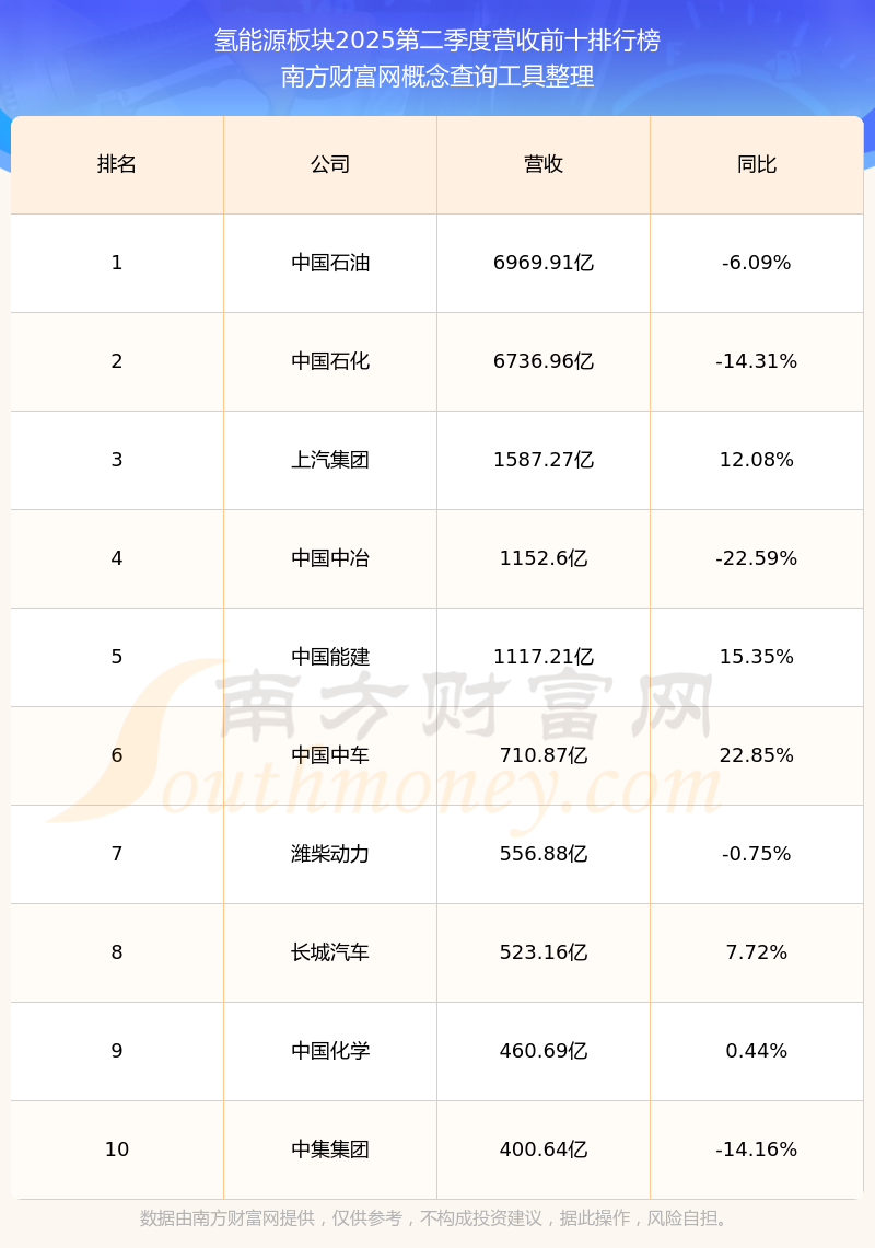 按照南方財(cái)富網(wǎng)概念查詢工具統(tǒng)計(jì),該股所屬板塊為氫能源板塊,該板塊共有324只股票,康普頓2025第二季度營(yíng)收在該板塊中排名為第278名,該板塊2025第二季度營(yíng)收排名前十的股票如下表: