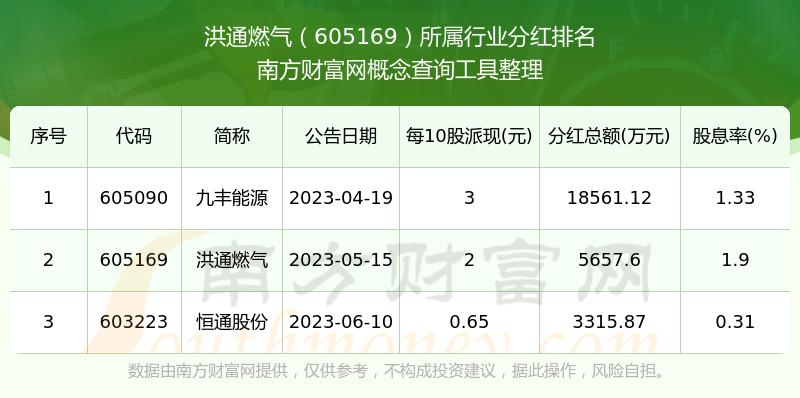 按照南方財富網(wǎng)趨勢選股系統(tǒng)統(tǒng)計,洪通燃氣所屬行業(yè)為LNG行業(yè),LNG行業(yè)分紅排名情況如下表: