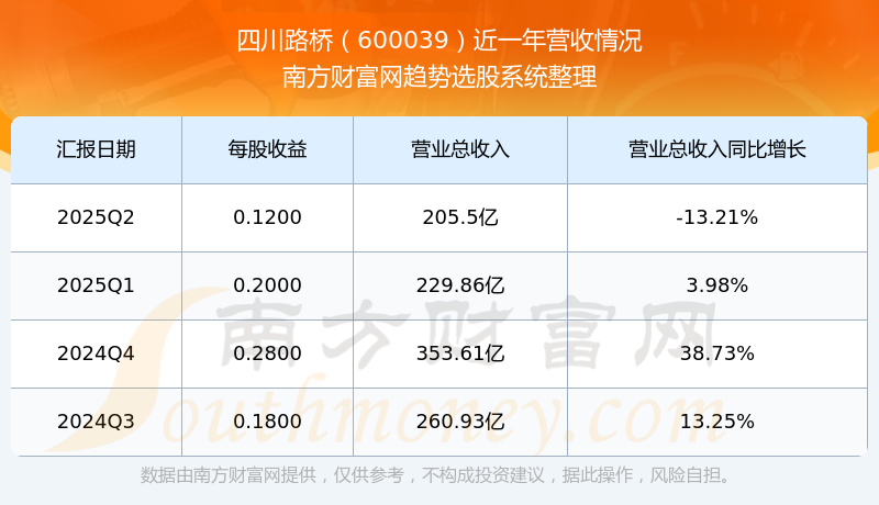 四川路橋2025年第二季度顯示,公司主營(yíng)收入205.5億元,同比-13.21%;歸母凈利潤(rùn)10.05億元,同比-30.1%;扣非凈利潤(rùn)9.44億元,同比-33.17%。