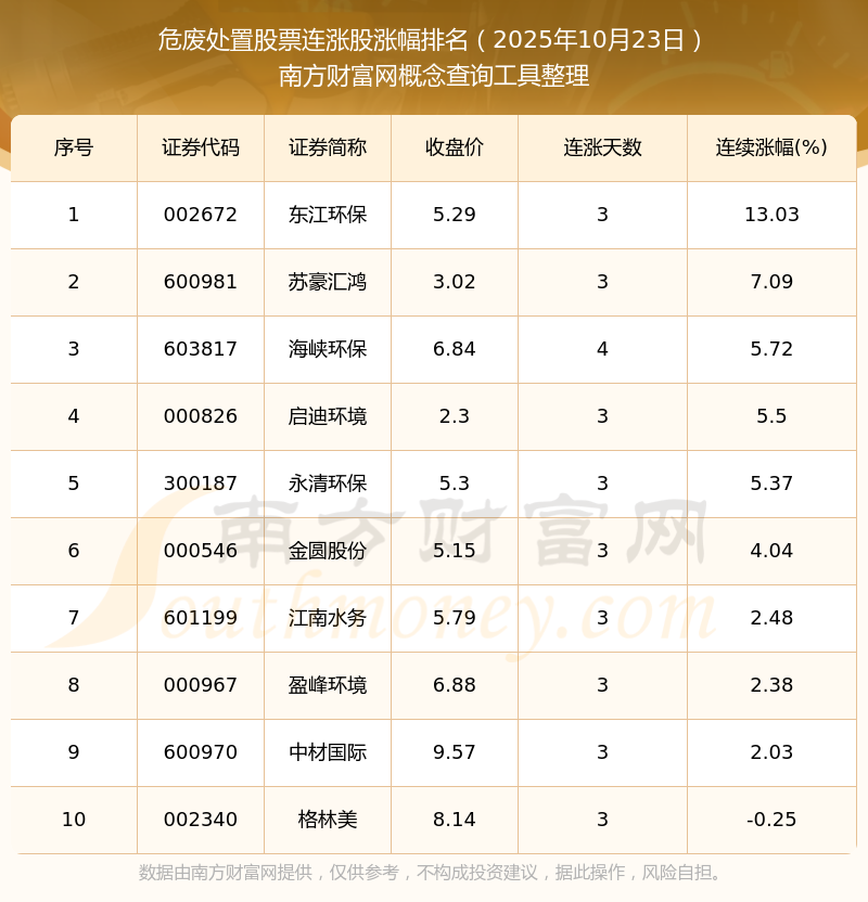 2025年10月23日危廢處置股票連漲股漲幅排名