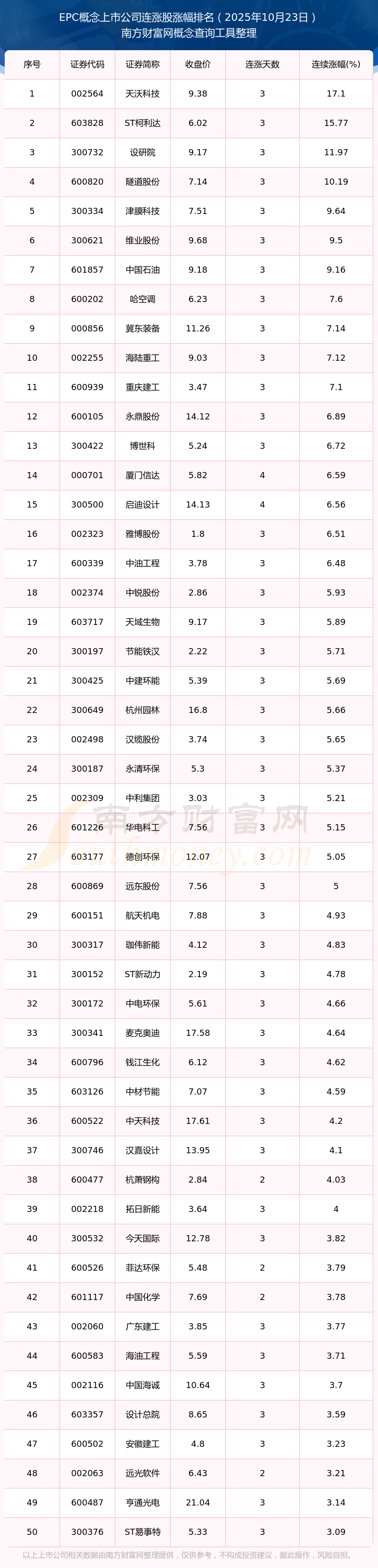 2025年10月23日EPC概念上市公司連漲股漲幅排名