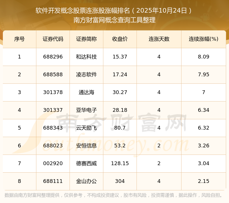 2025年10月24日軟件開發(fā)概念股票連漲股漲幅排名
