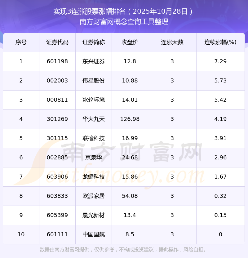 2025年10月28日實現(xiàn)3連漲股票漲幅排名