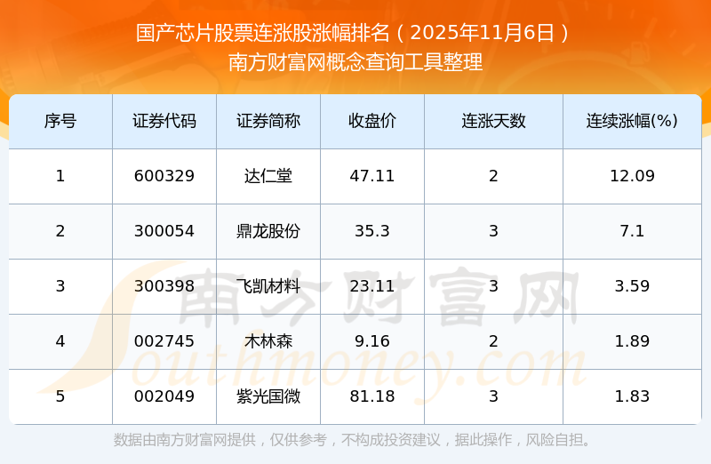 2025年11月6日國產(chǎn)芯片股票連漲股漲幅排名