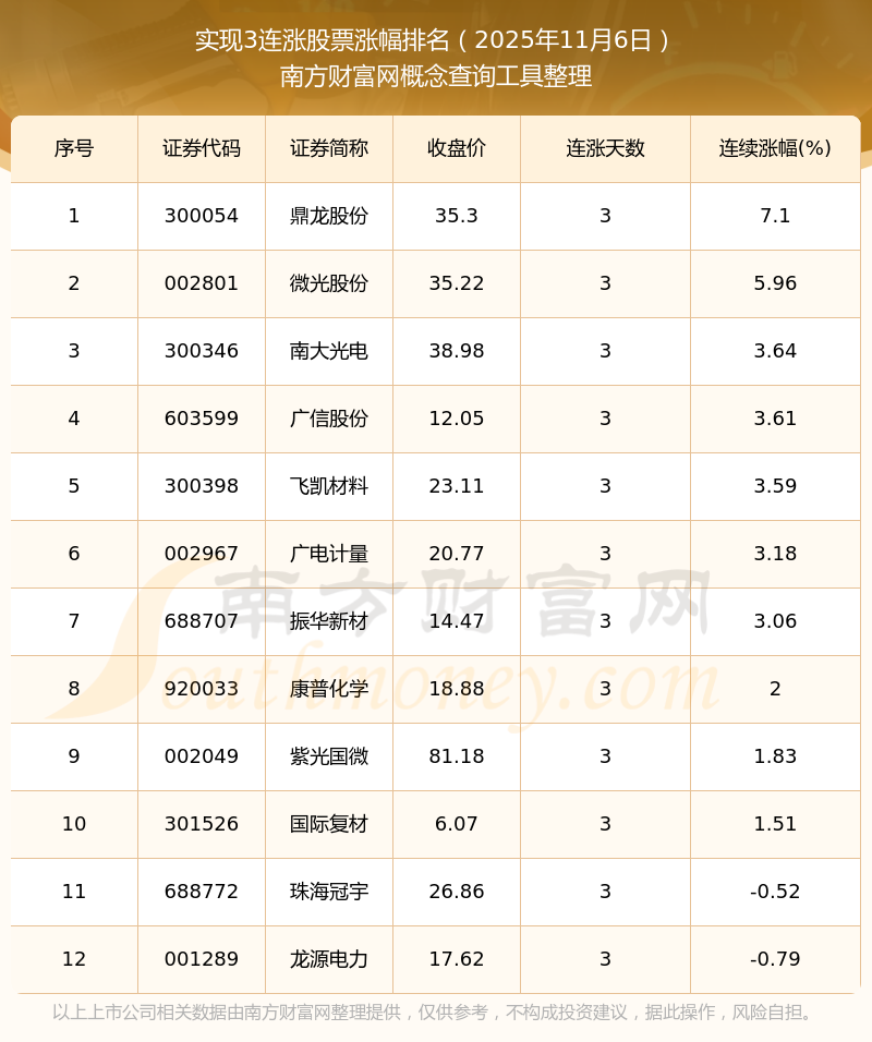 【今日股市行情】2025年11月6日12只股票實現(xiàn)3連漲!