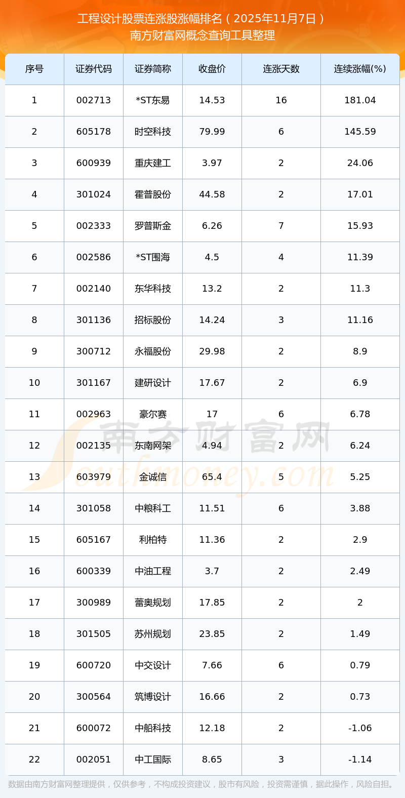 2025年11月7日工程設(shè)計(jì)股票連漲股漲幅排名