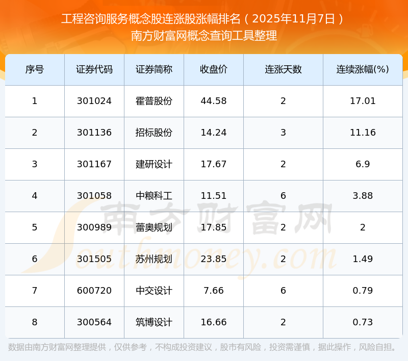 2025年11月7日工程咨詢服務(wù)概念股連漲股漲幅排名