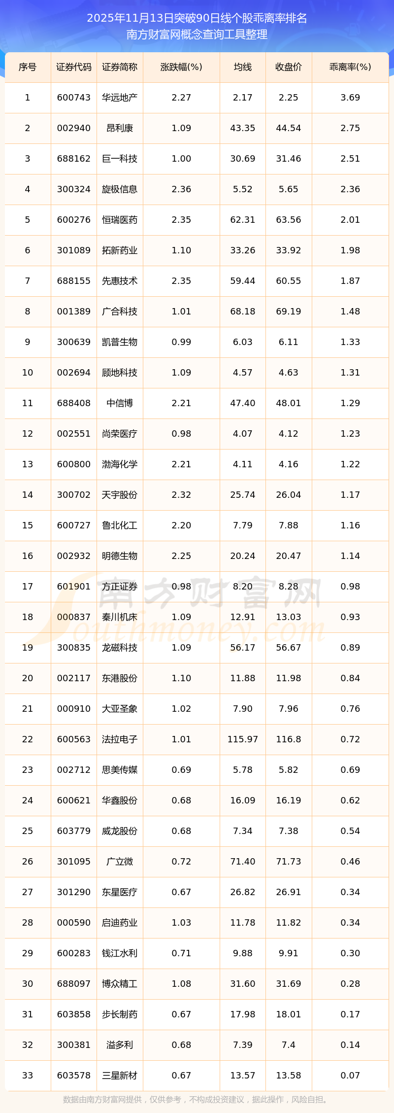 2025年11月13日突破90日線個(gè)股乖離率排名
