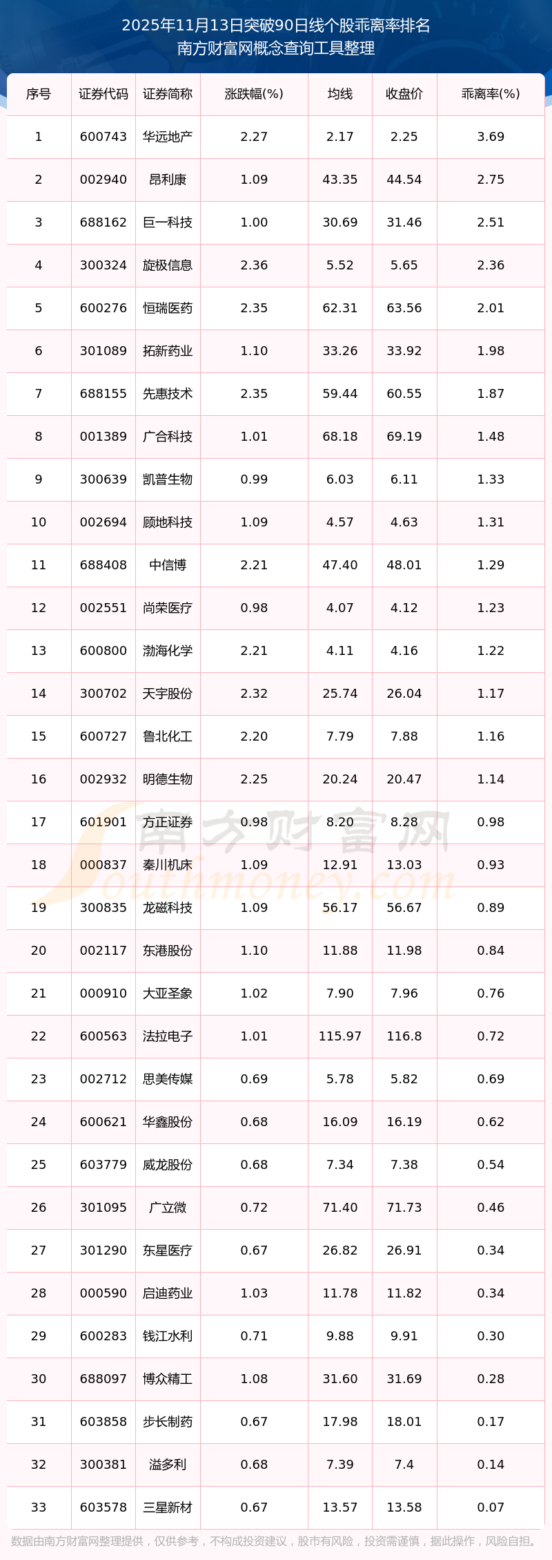 2025年11月13日突破90日線個(gè)股乖離率排名