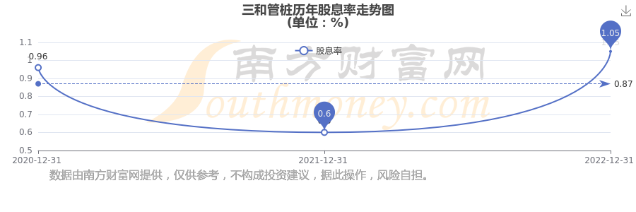 三和管樁最新一次公布的分紅方案為10派1.3元。本次權(quán)益分派股權(quán)登記日為2023年5月11日,除權(quán)除息日為2023年5月12日,派息日為2023年5月12日。