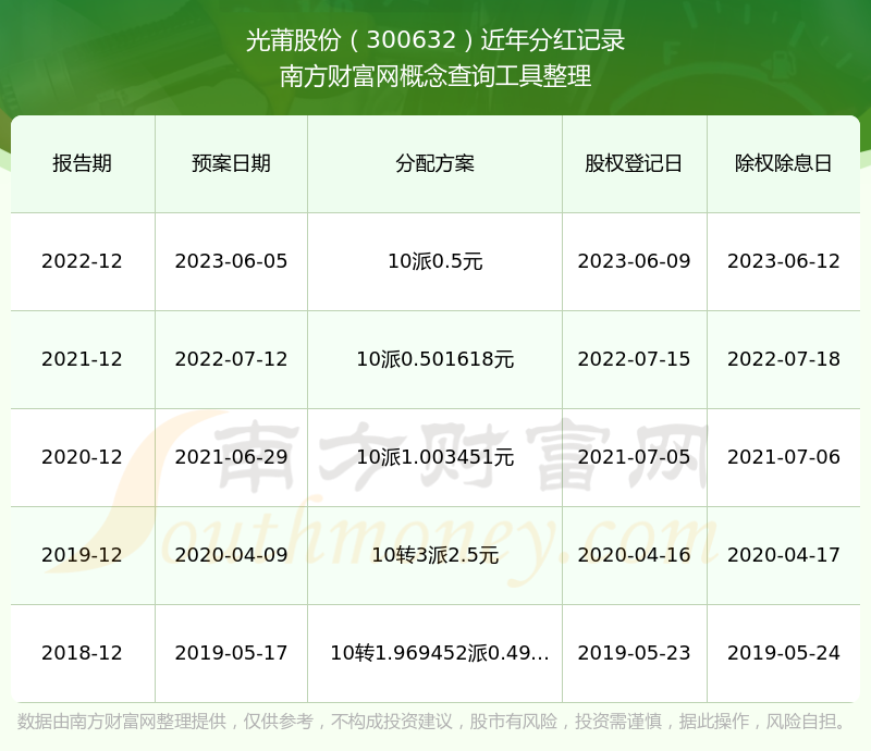 光莆股份最新一次公布的分紅方案:10派0.5元。