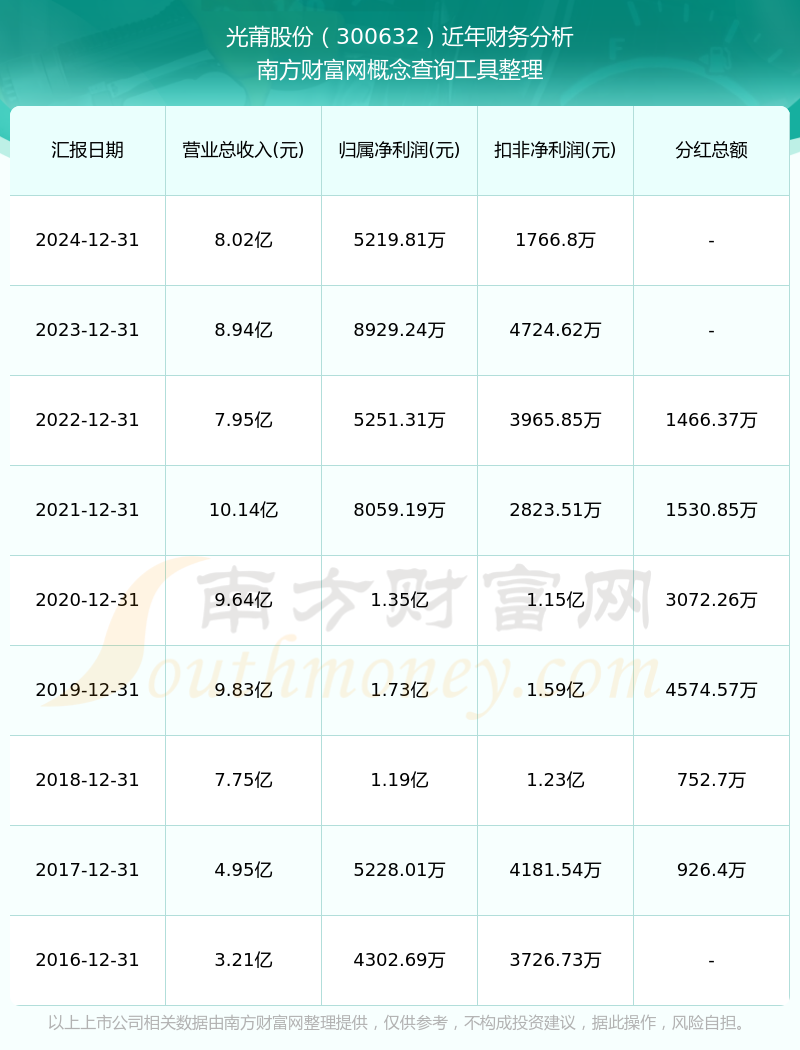 2024年報顯示,光莆股份實現(xiàn)營收8.02億,同比增長-10.33%;凈利潤5219.81萬,同比增長-41.54%;毛利率29.81%。