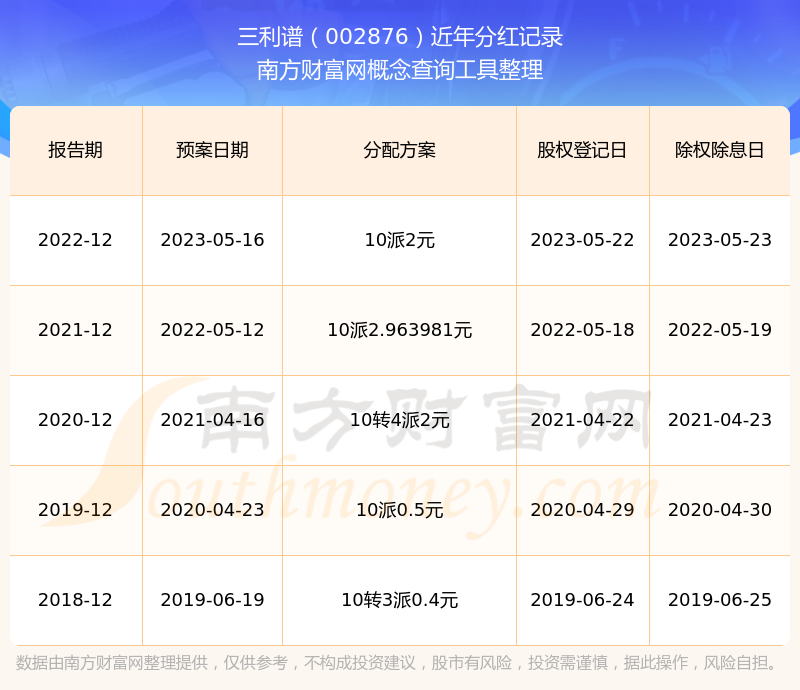 三利譜最新一次公布的分紅方案為10派2元。本次權(quán)益分派股權(quán)登記日為2023年5月22日,除權(quán)除息日為2023年5月23日,派息日為2023年5月23日。