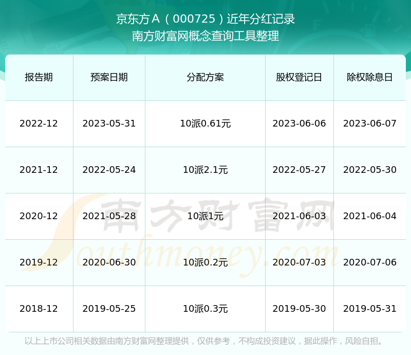 京東方A最新一次公布的分紅方案:10派0.61元。