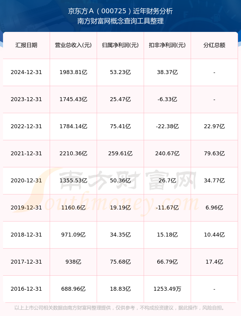 京東方A公司2024年實現(xiàn)營業(yè)收入1983.81億元,同比增長13.66%;凈利潤53.23億元,同比增長108.97%;毛利率15.2%。