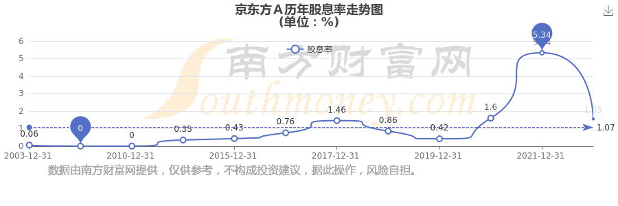 京東方A歷年股息率走勢如下圖: