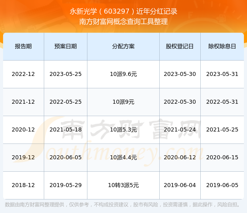 永新光學(xué)歷年分紅派息情況如下表所示: