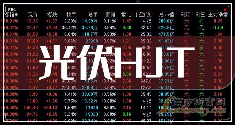 據南方財富網概念查詢工具數據顯示,光伏HJT上市公司龍頭有: