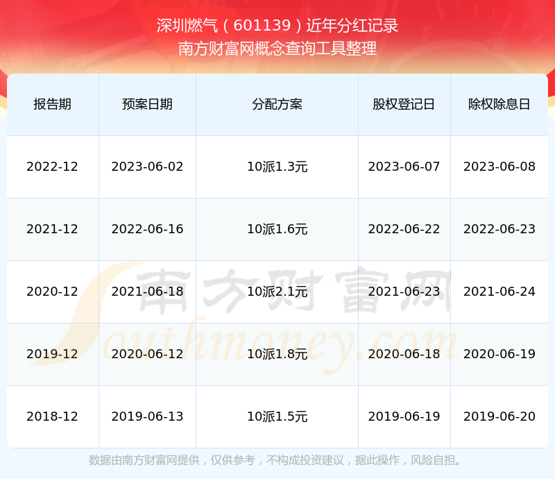 深圳燃氣最新一次公布的分紅方案:10派1.3元。
