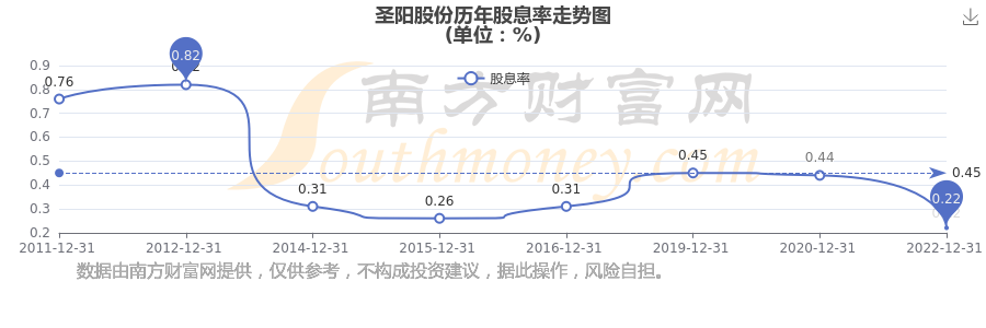 近年圣陽(yáng)股份年度股息率走勢(shì)如下圖: