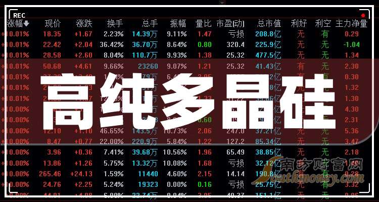 據(jù)南方財(cái)富網(wǎng)概念查詢工具數(shù)據(jù)顯示,高純多晶硅概念股有: