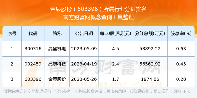 金辰股份最新一次公布的分紅方案為10派1.7元。本次權(quán)益分派股權(quán)登記日為2023年6月1日,除權(quán)除息日為2023年6月2日,派息日為2023年6月2日。